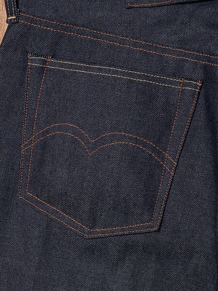 アメリカが世界恐慌から少しずつ立ち直ろうとしていた時代、1937年の501®ジーンズは古きものと新しきものが混じり合うジーンズに進化を遂げました。 1937年はアメリカにとって苦しみの年でした。 大恐慌の風は吹き荒れ、仕事はなく、多くのアメリカ人が農場や家を失いました。 しかし常に前を向くことを忘れないサンフランシスコの人々はその荒波に屈することはありませんでした。 1937年のこの年、サンフランシスコを象徴するゴールデンゲートブリッジがようやく完成したのです。 Levi’s®501®ジーンズと同じようにリベットで120万個ものリベットで繋がれた橋です。 1937年501®ジーンズには従来通りシンチバックが付けられていましたが、ウエストバンドのサスペンダーボタンは取り除かれました。 サスペンダーボタン無しでは困るという人にはプレスして取り付けるボタンが渡されました。 501®ジーンズの右後ろのポケットには彼の有名なレッドタブが付けられました。 1936年に初めて採用されたこのレッドタブは、Levi’s®のジーンズを競合他社のものと区別するために考案されたものです。 またリベットが家具や鞍に傷を付けるという顧客の不満に応えるため、Levi’s®はリベットが隠れるようにバックポケットを縫い付けるようになりました。 これを強調するため、世界初のポケットフラッシャーも発明されました。 有名なサーモン色の生地をバックポケットに縫い付けたフラッシャーには、“TheRivet’sStillThere.”(リベットはまだここに)という文字と共にポケットの角を指し示す矢印が描かれていました。このような背景のある1937年モデルは、深めの股上とゆったりとしたストレートシルエットが特徴です。