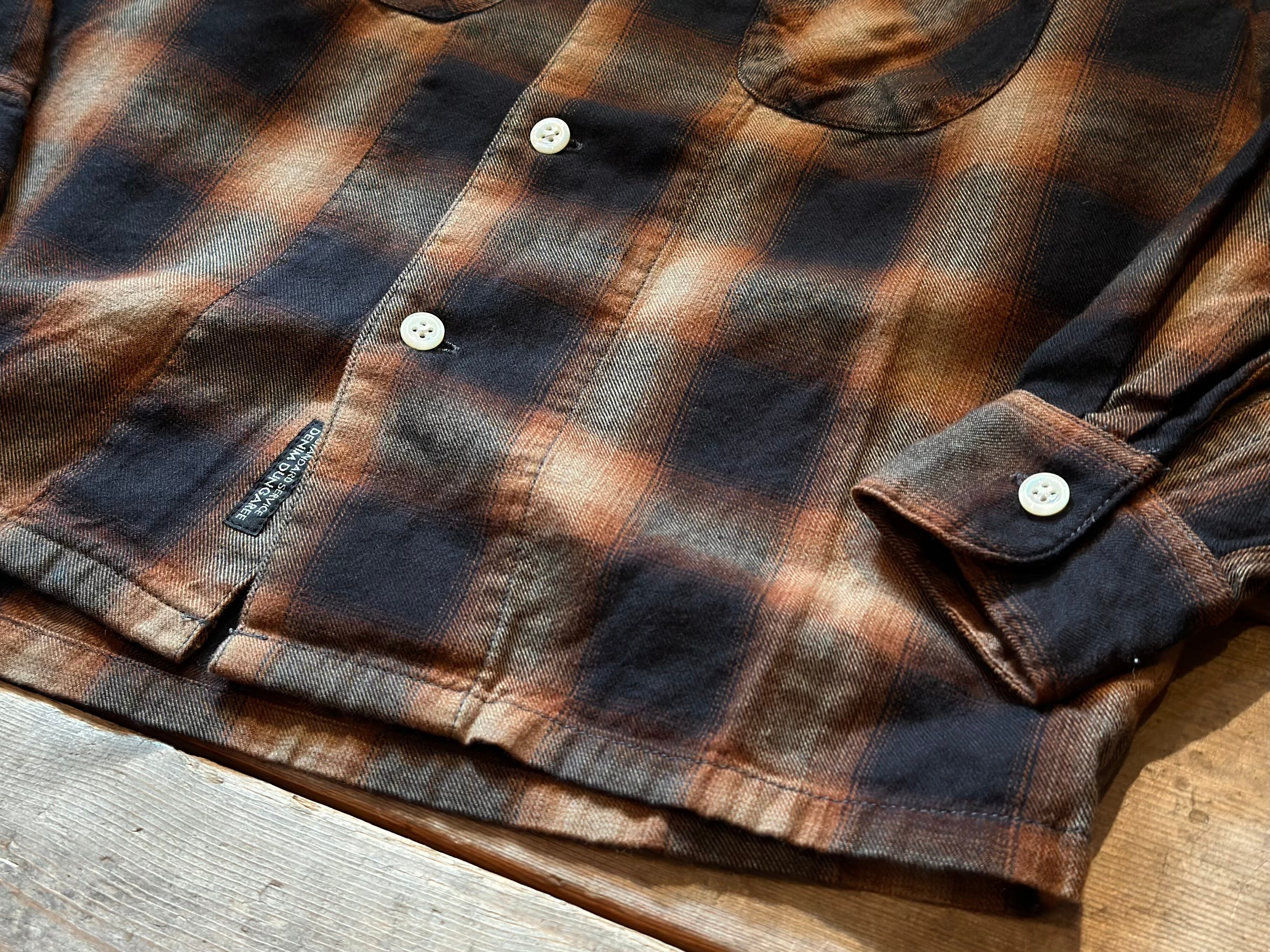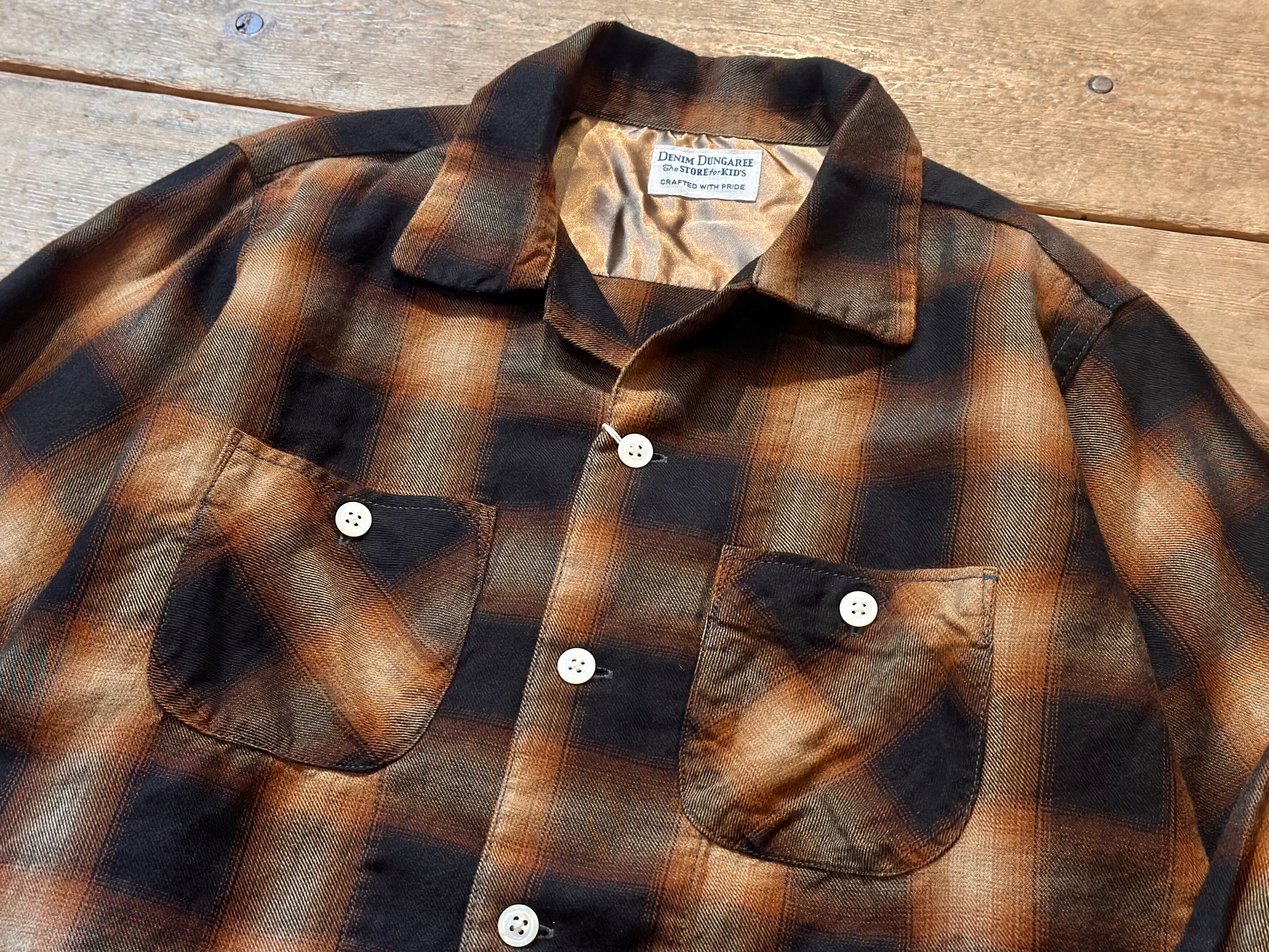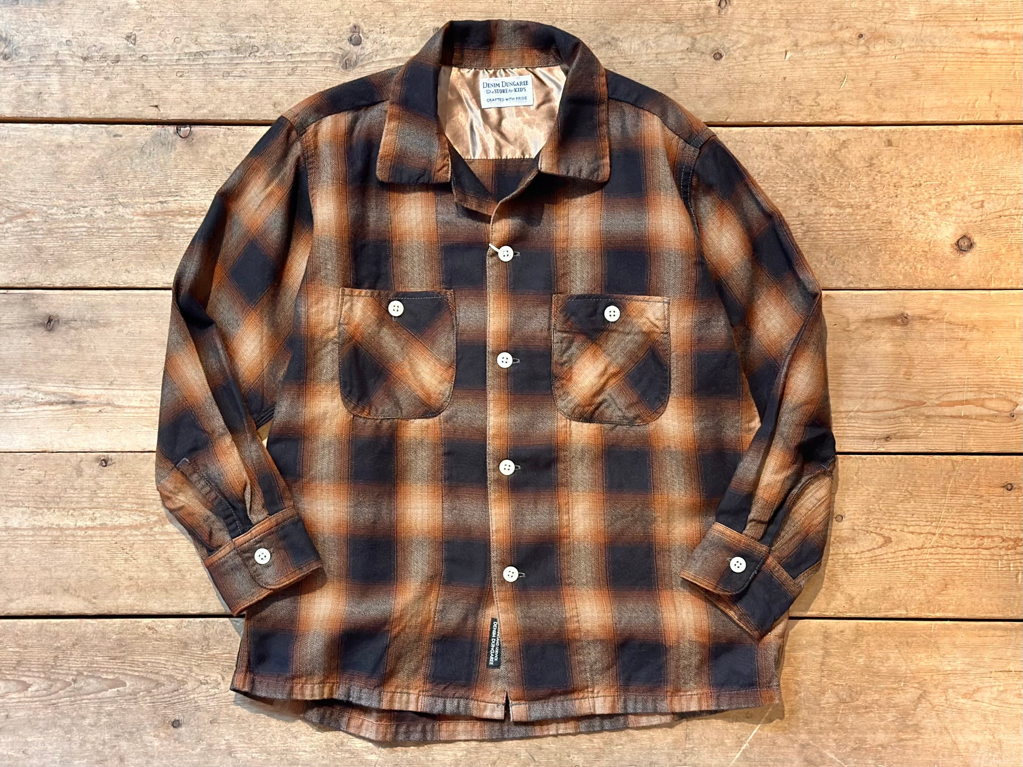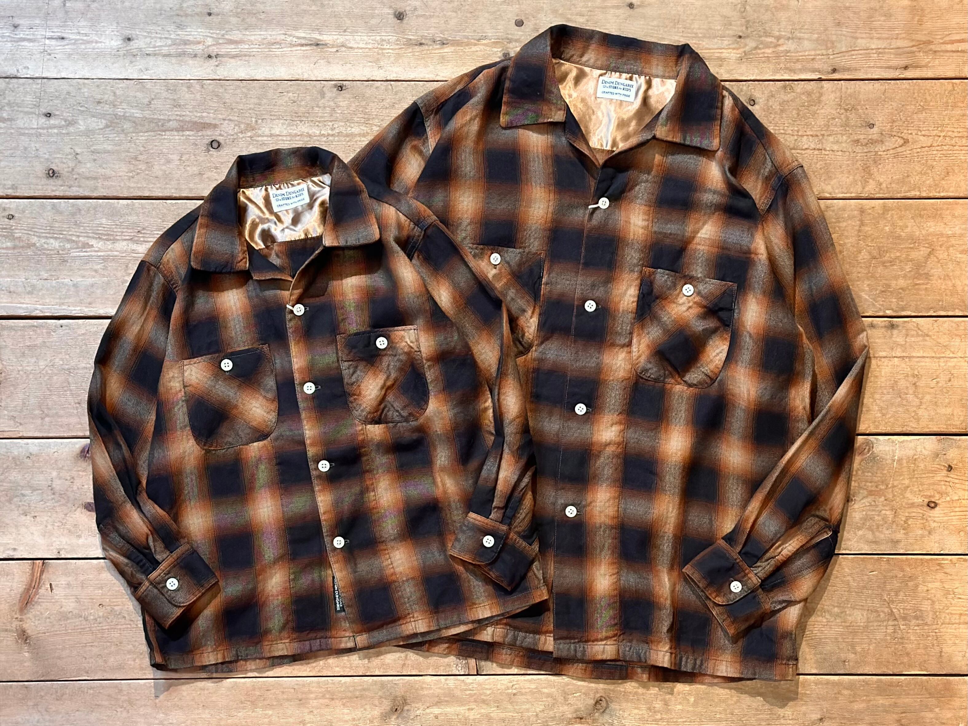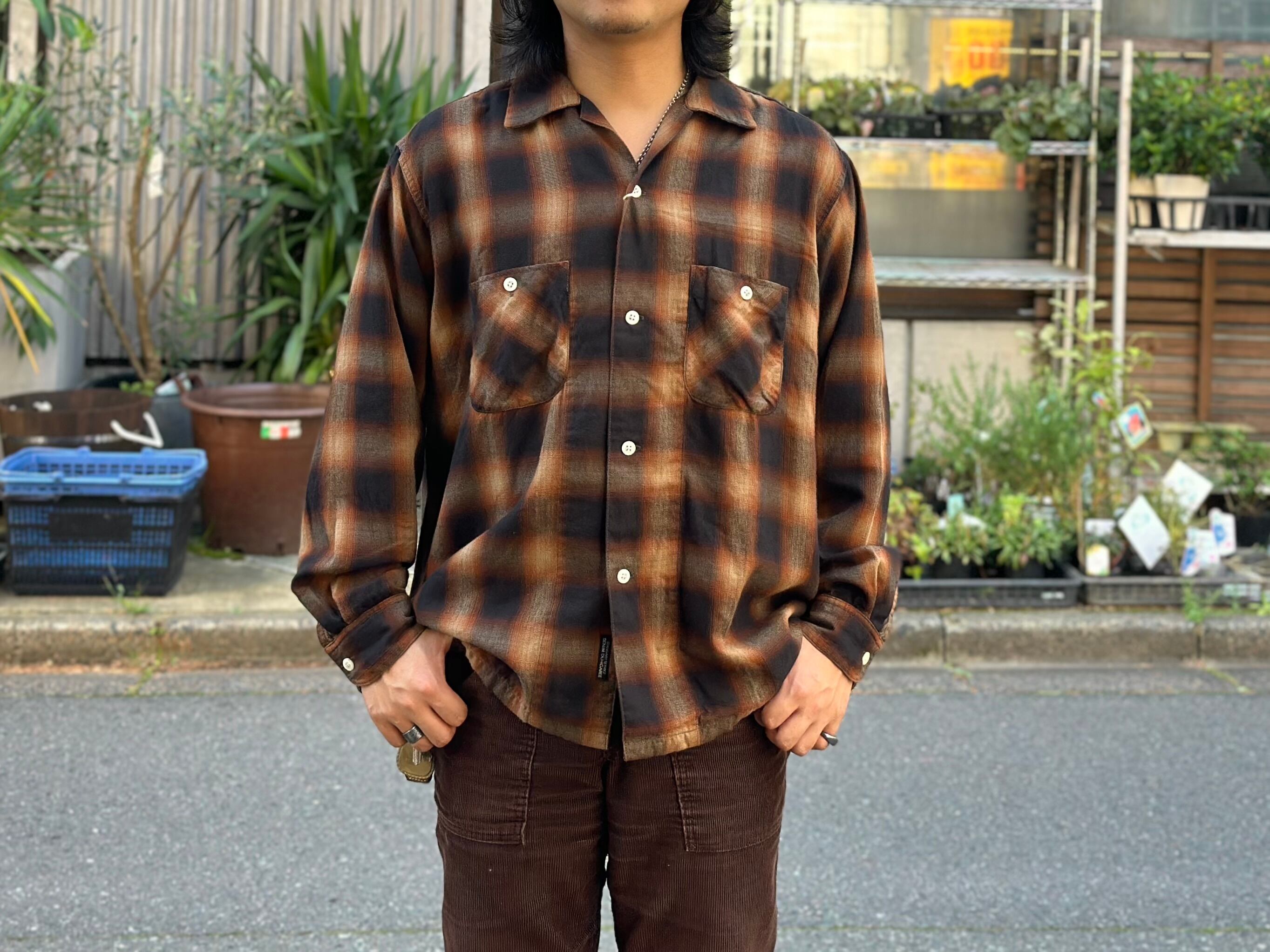 1950年代の開襟シャツを元にしたオンブレーチェック生地のシャツ。一枚でさらっと着用も可能ですが、カーディガンを合わせてレイヤードさせたかっこいいグランジスタイルをしてもらいたいです。
