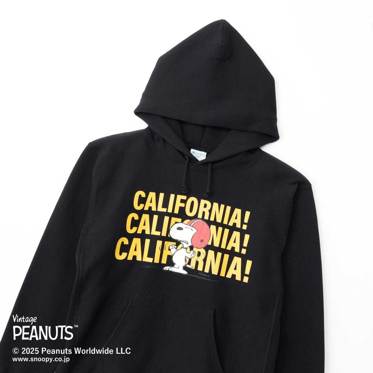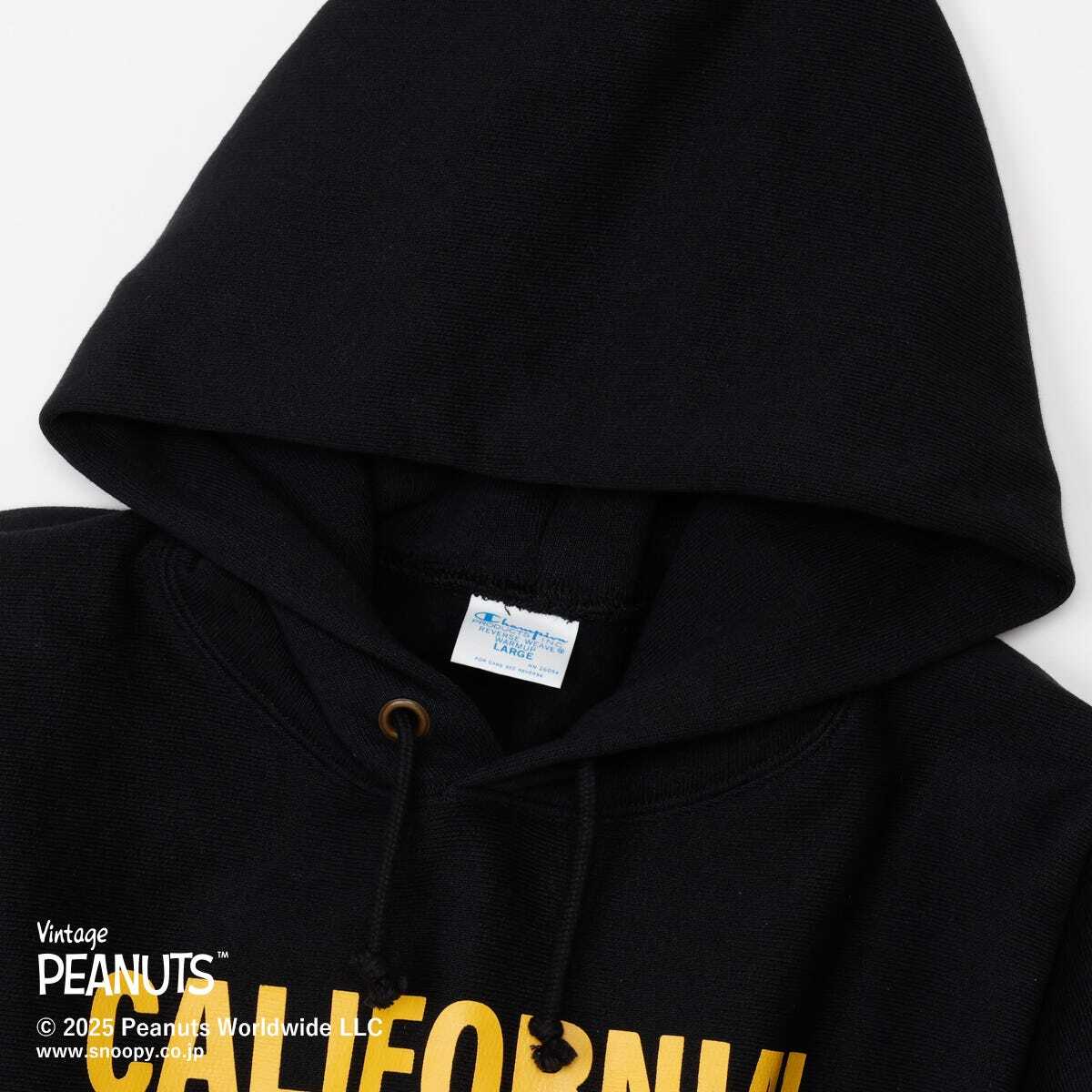 Champion®のスウェットシャツは、「ザ キング オブ スウェットシャツ」と評されるほど、世界中の多くのファンに愛されてきました。チャンピオンを代表する製法の「REVERSE WEAVE®(リバースウィーブ®)」。洗うほどにタフになり、着こむほどに独特の風合いや味が出る裏起毛素材を使用した「REVERSE WEAVE® 11.5oz. Terry Fleece」シリーズのフーデッドスウェットシャツです。コットン素材は環境に配慮して生産されたサステナブルなアメリカ綿を100%使用。本来は縦方向に使われる生地を横方向に使用する「REVERSE WEAVE®」製法によって縦の生地の縮みを防ぐと同時に、両脇に「EXPANSION GUSSET(エクスパンションガゼット)」を付けることで横の縮みへの影響を少なくし、動きやすさに配慮しています。SNOOPYで知られるPEANUTSのチャンピオンオリジナルアイテムで、胸にアメリカンフットボールをモチーフにしたグラフィックを入れています。