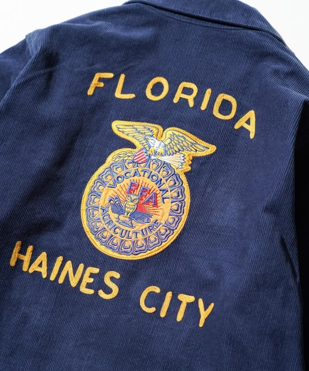 FFA(Future Farmers Agriculture)ジャケットは1928年設立、アメリカの国立農業学校のユニフォームウェアで州ごとに違う刺繍、着用者の名前が施されているジャケット。