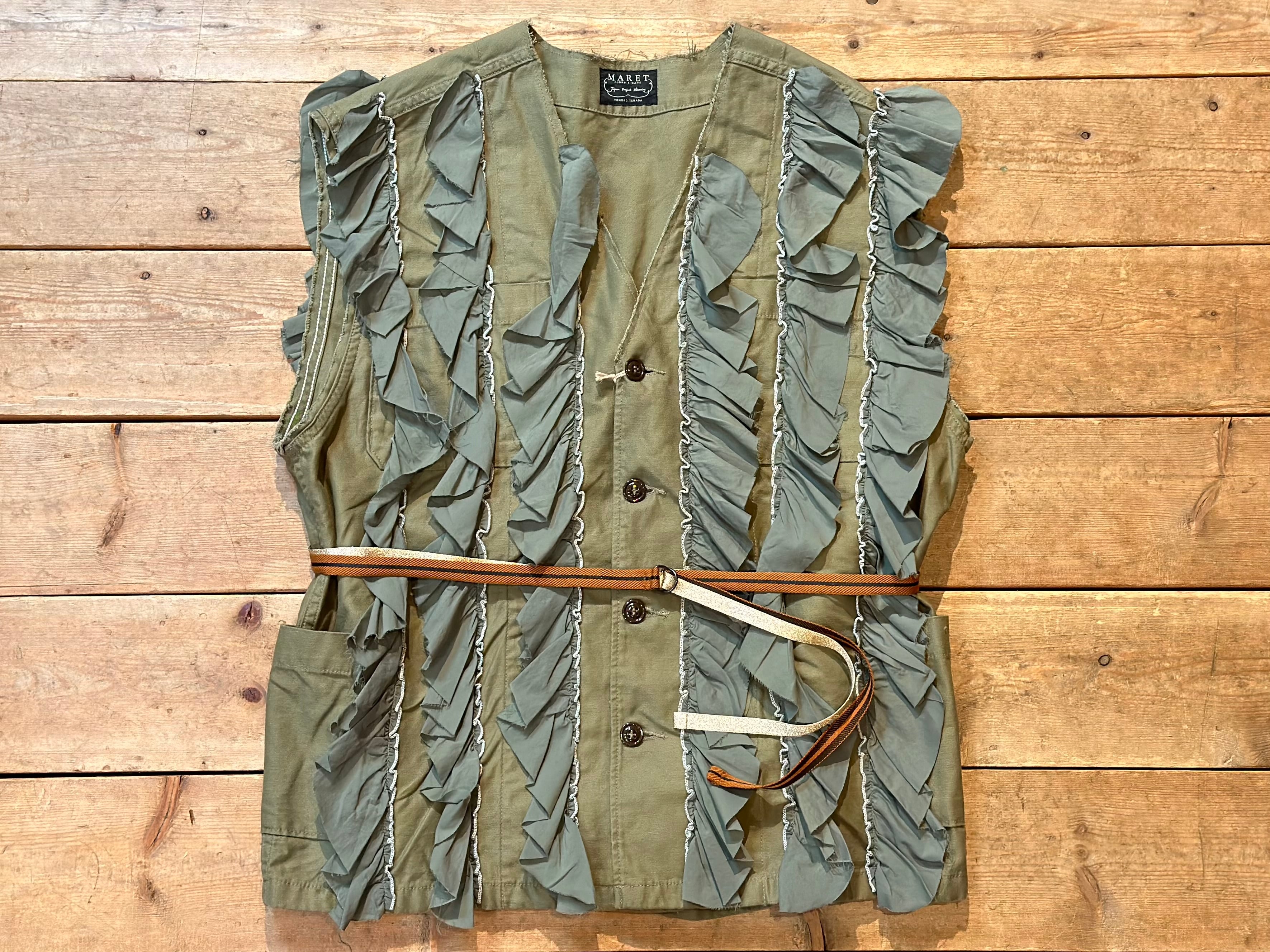 ミリタリーのユーティリティシャツをベストにカットオフ、フリルをモリモリに。