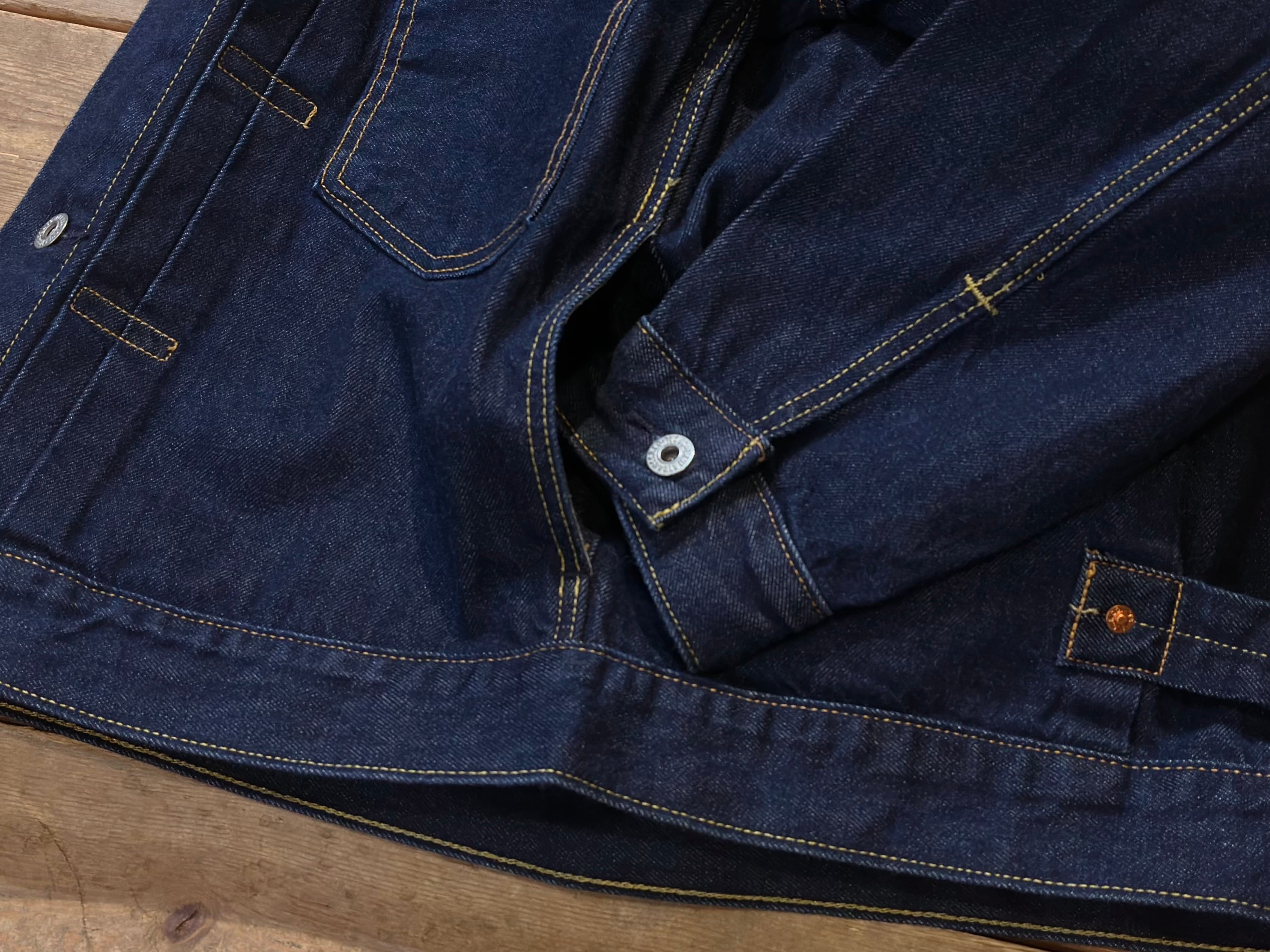1936年のTYPE I トラッカージャケットを復刻したヴィンテージ風シルエットのTYPE I トラッカージャケット。前面に入れたダブルプリーツ、シングルの胸ポケット、フィット感を調整できるシンチバックなど、当時のディテールを再現しました。このジャケットをリラックスフィット、サイドポケットを付けて、現代風にアップデート。綿100%のしっかりとした生地。季節問わず使っていただけるアイテムです。