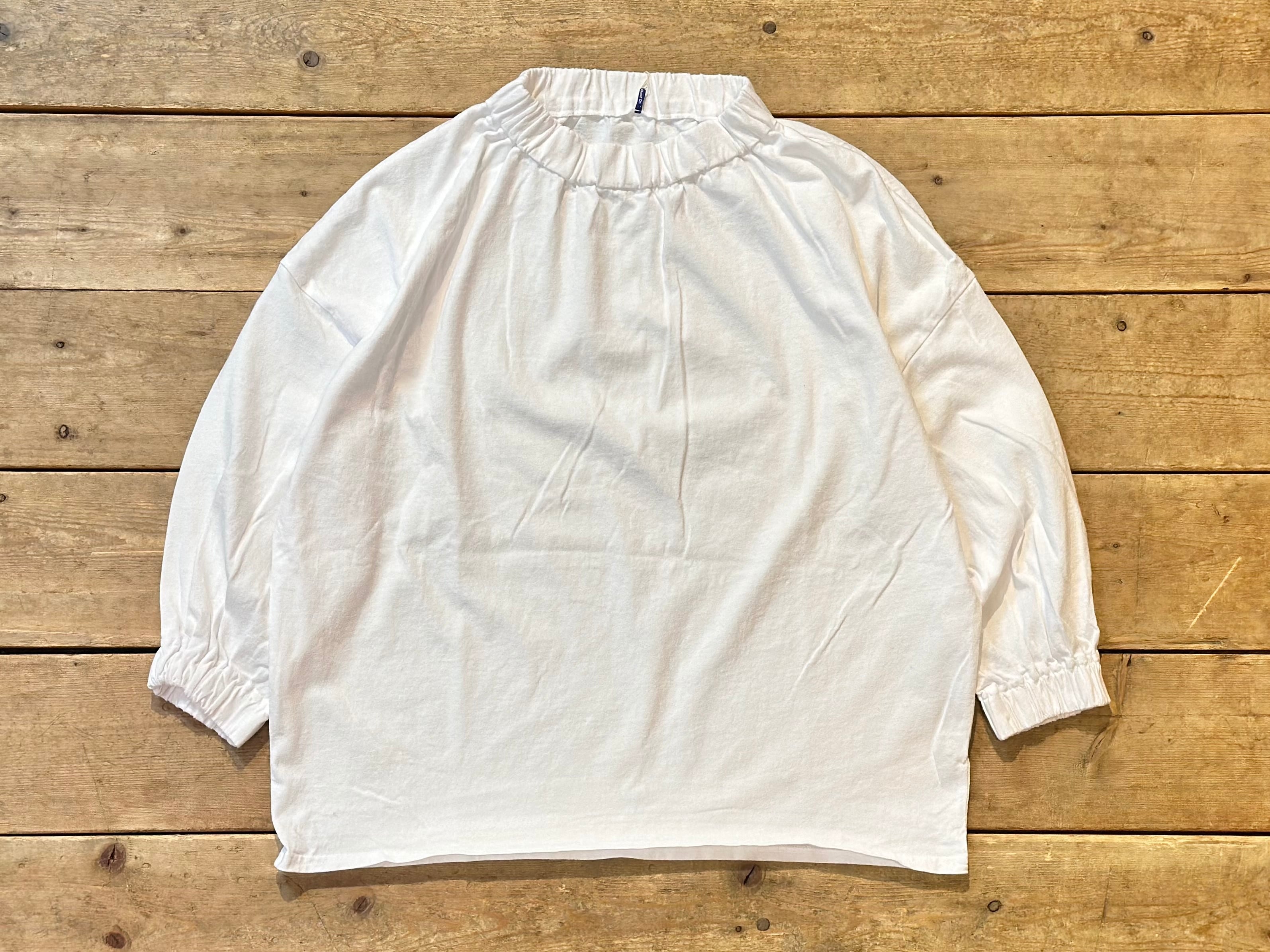 七分袖で抜け感をプラスし、首周りと袖口に施したギャザーが程よいボリューム感のあるアクセントとなっています。