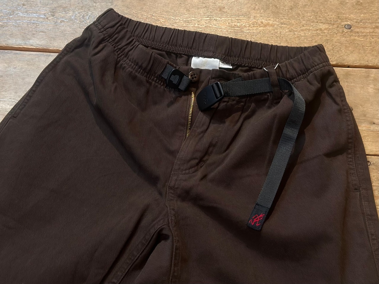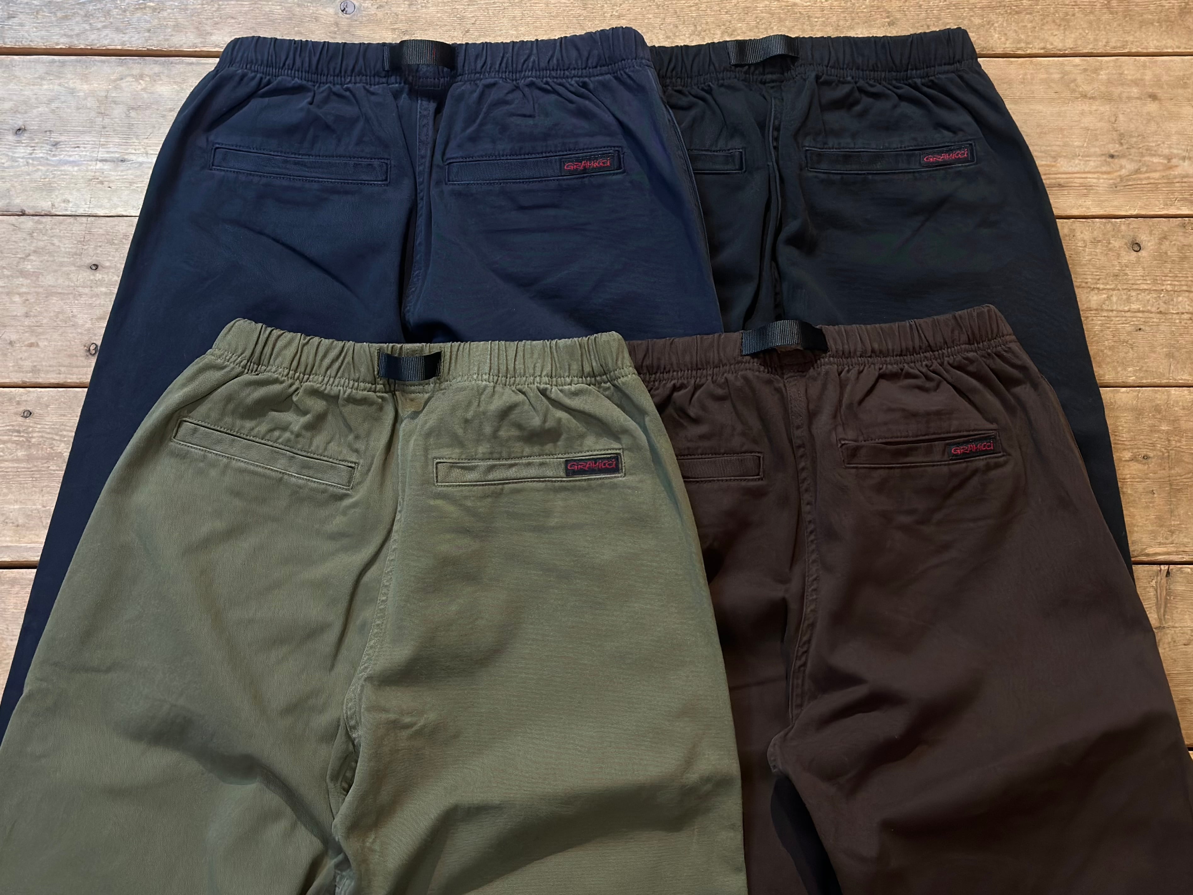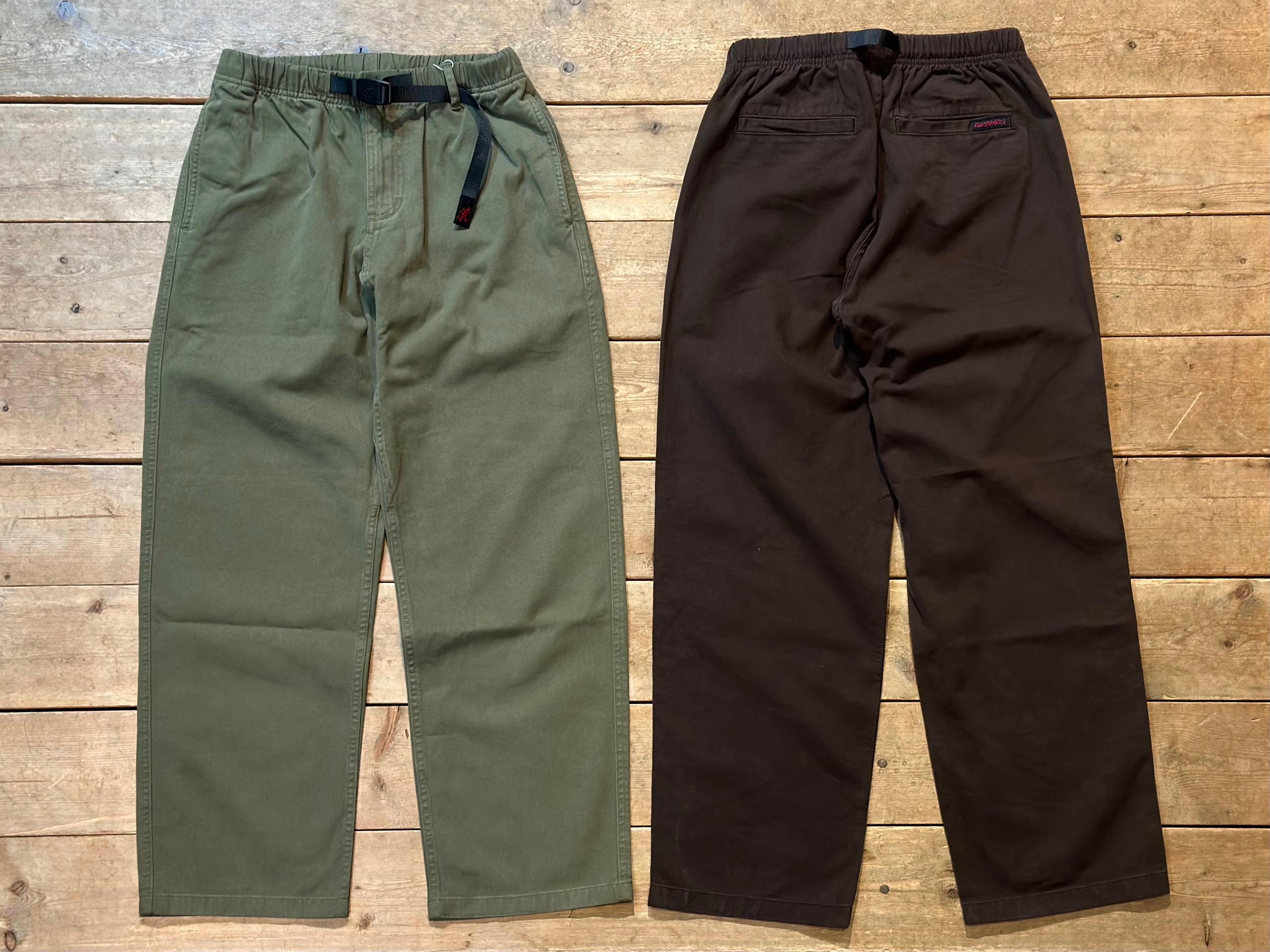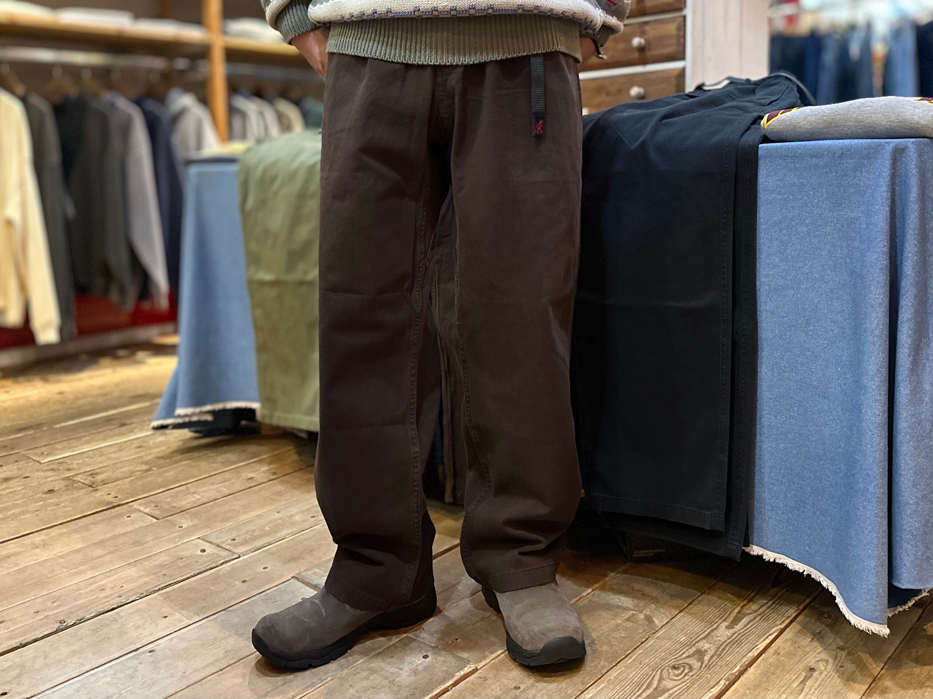 180度の開脚を可能としたガセットクロッチ、片手で調整できるウェビングベルト&イージーウェスト。1980年代、クライマーとしての体験をもとに、クライマーが欲しい機能をすべて具現した革新的なパンツとしてGRAMICCI PANTは誕生しました。裾にかけて細くなるテーパードシルエットのGRAMICCIパンツに比べ、腿から裾までに若干のゆとりを持たせたストレートシルエットです。耐久性が高く、ハリコシのある、激しい動きにも耐える、環境配慮エココットンツイルを使用し、雰囲気のある表情に染め上げています。