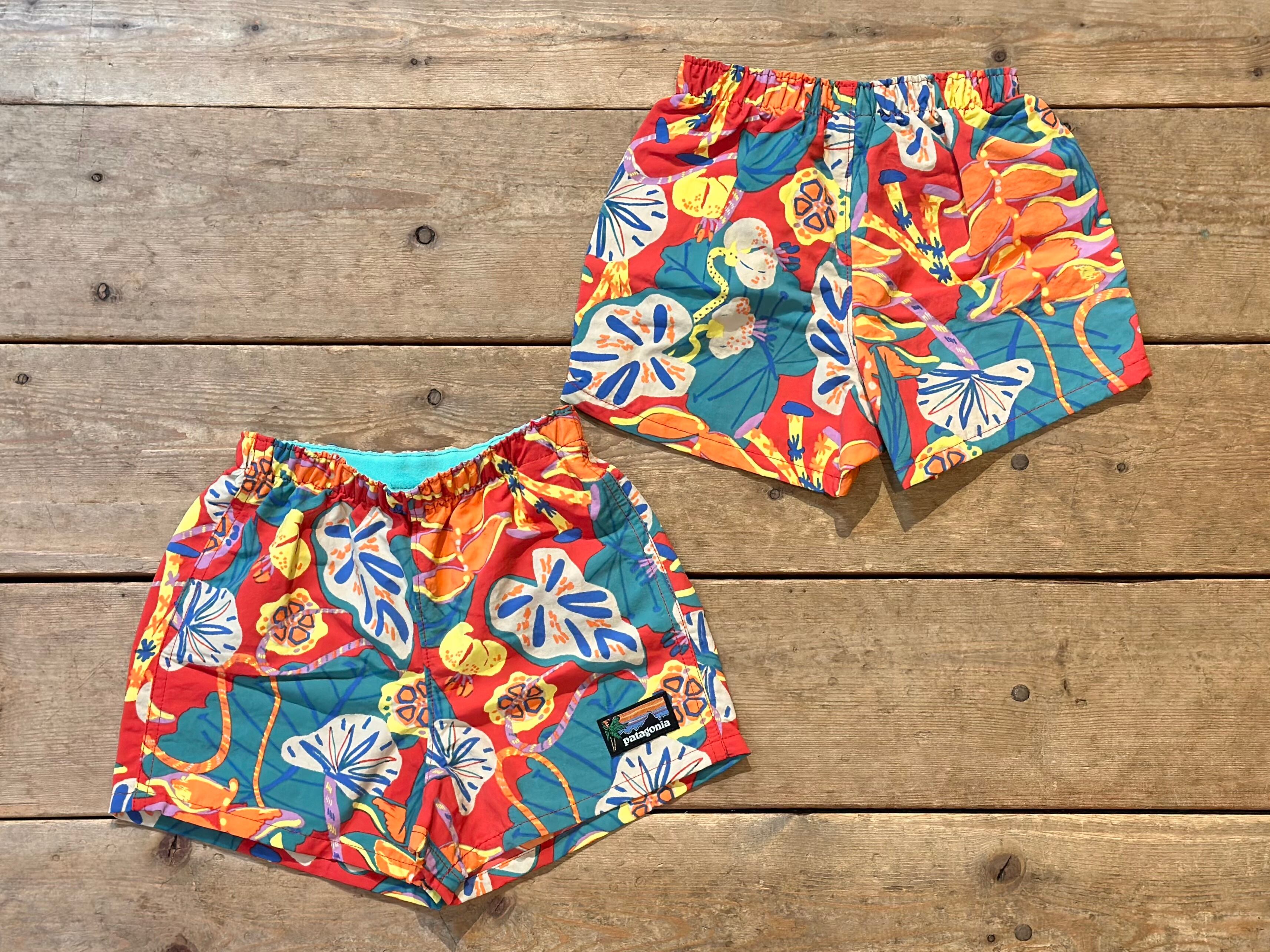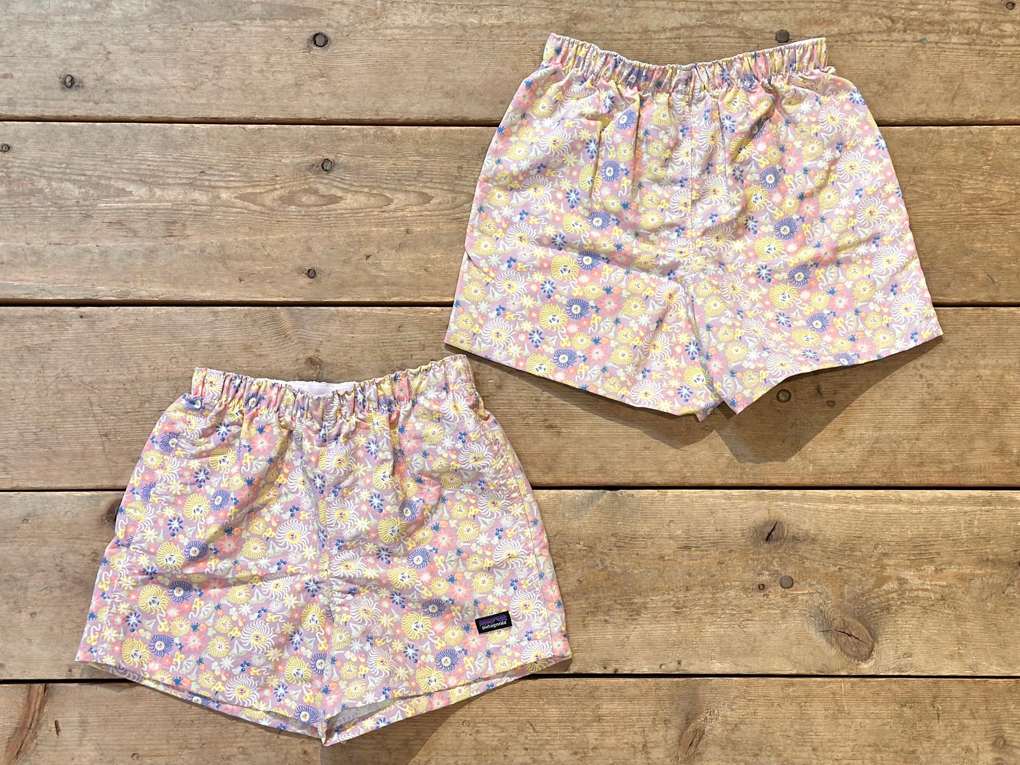 海辺をはじめどこでも活躍する速乾性を備えたベビー・バギーズ・ショーツは、おむつの着用に対応し、着せ替えしやすいソフトな伸縮性ウエストバンド付き。漁網をリサイクルして海洋プラスチック汚染の削減に貢献する、軽量なネットプラス・ポストコンシューマーリサイクル・ナイロン100%素材のファイユに、軽度の水分を弾くDWR(耐久性撥水)加工はPFASを意図的に添加せずに製造