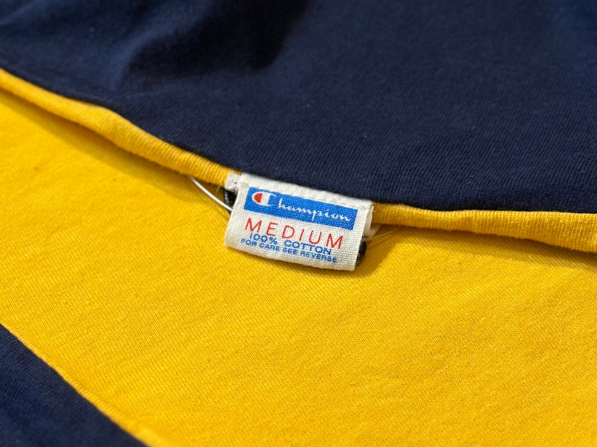 1939年に海軍士官学校から軍装品として開発を依頼され、1941年に製品化したUSNリバーシブルTシャツの復刻商品です。「1着で紅白戦ができるようなTシャツ」というオーダーに応え、当時のChampion®の営業マンであったハーマン・ビーバーが世界で初めて開発したのがリバーシブルTシャツでした。今回のアイテムは1970年代のデザインを復刻したもので、カラーは開発第1号に採用された、海軍の代表色であるネイビーとゴールドの掛け合わせをはじめとする3色展開です。同時期に採用していた、ブルーバーの中にChampionロゴを入れた通称「バータグ」と呼ばれる裾ネームも忠実に再現。左袖にCロゴワッペンが付いていない点も当時の仕様そのままです。