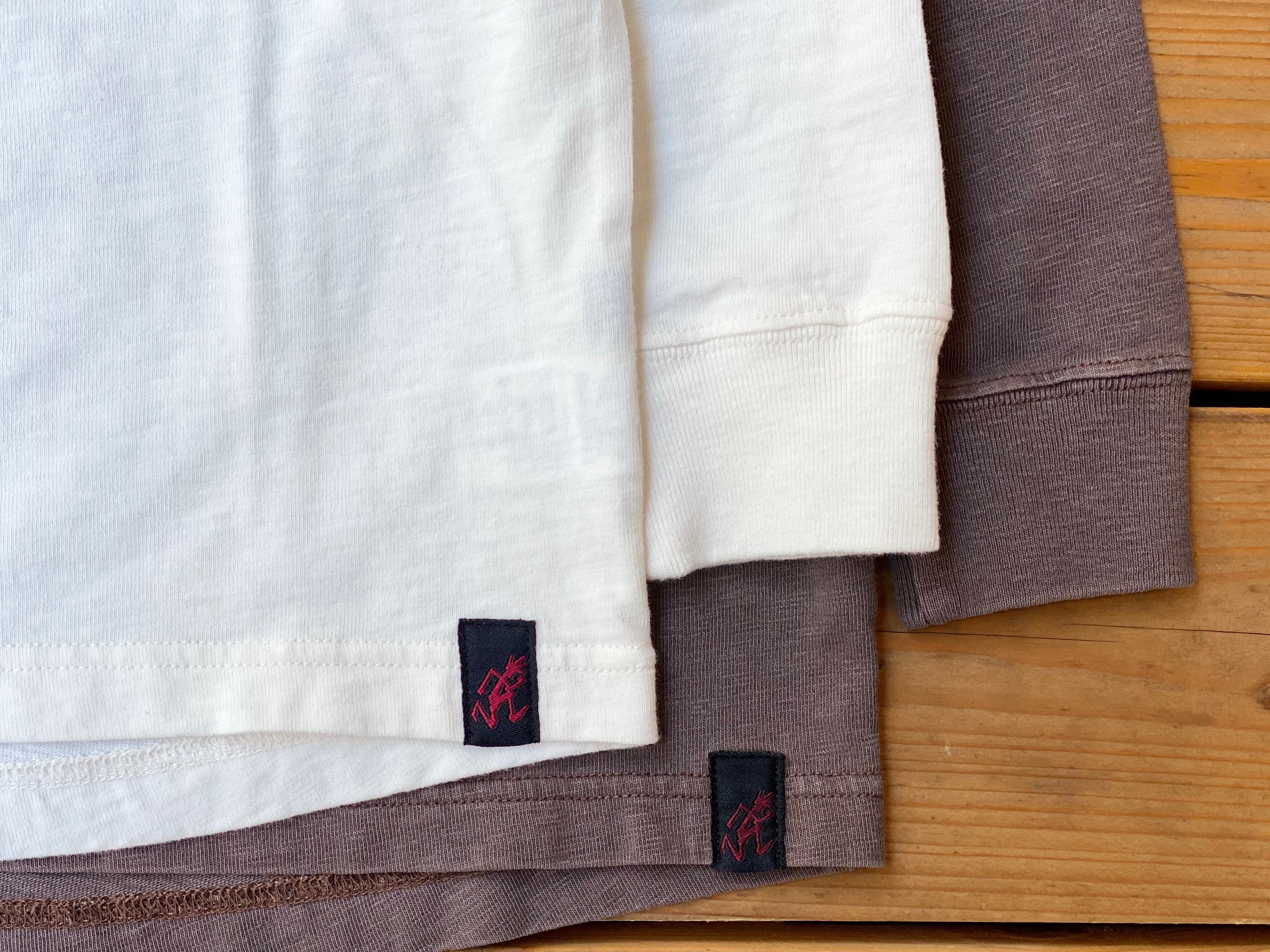 ポケット、裾、バックの首元のそれぞれにGramicciのブランドタグが付きます。