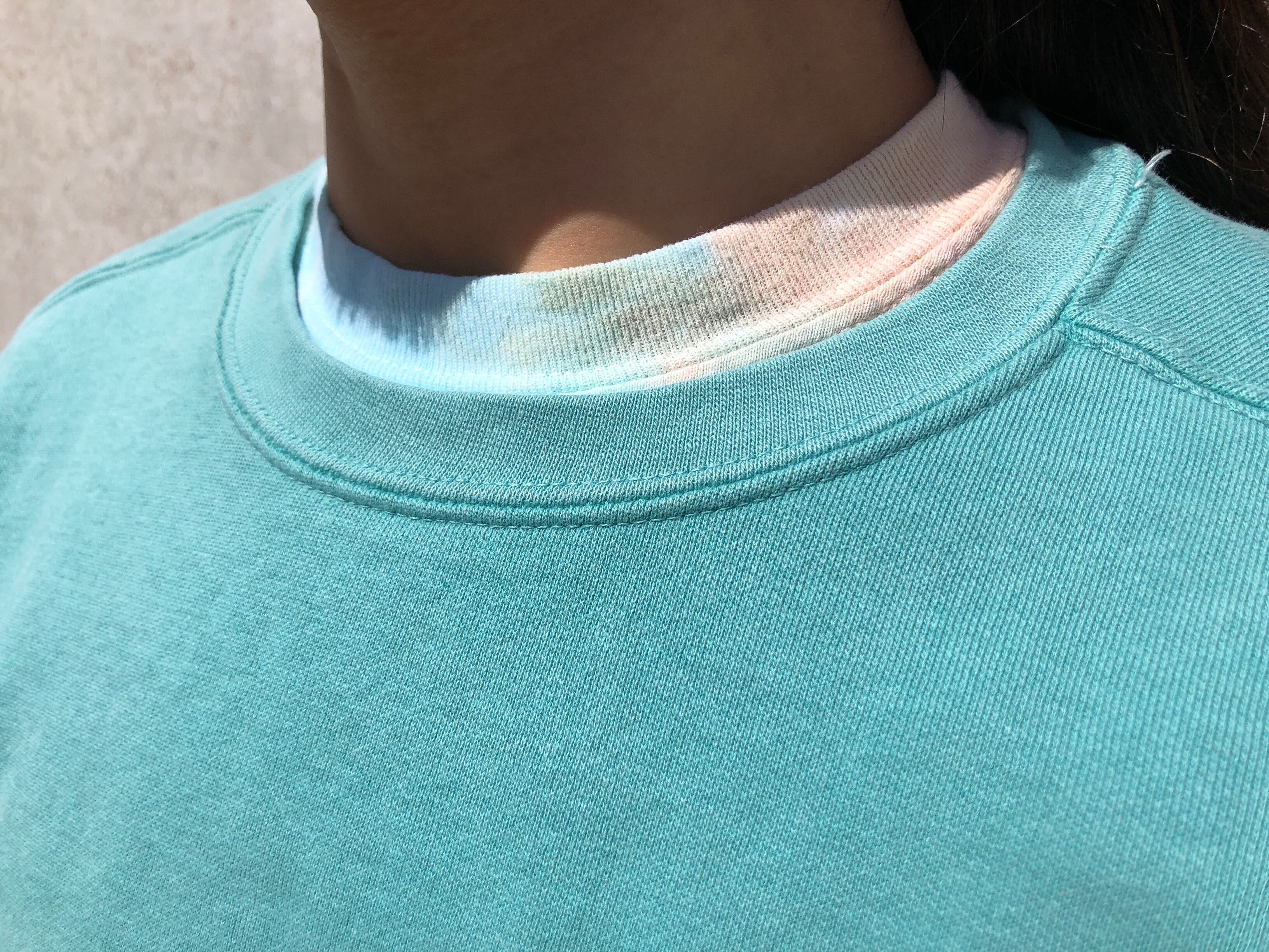 インパクトあるTシャツ、スウェットなどのインナーに挟んでもいい感じです。