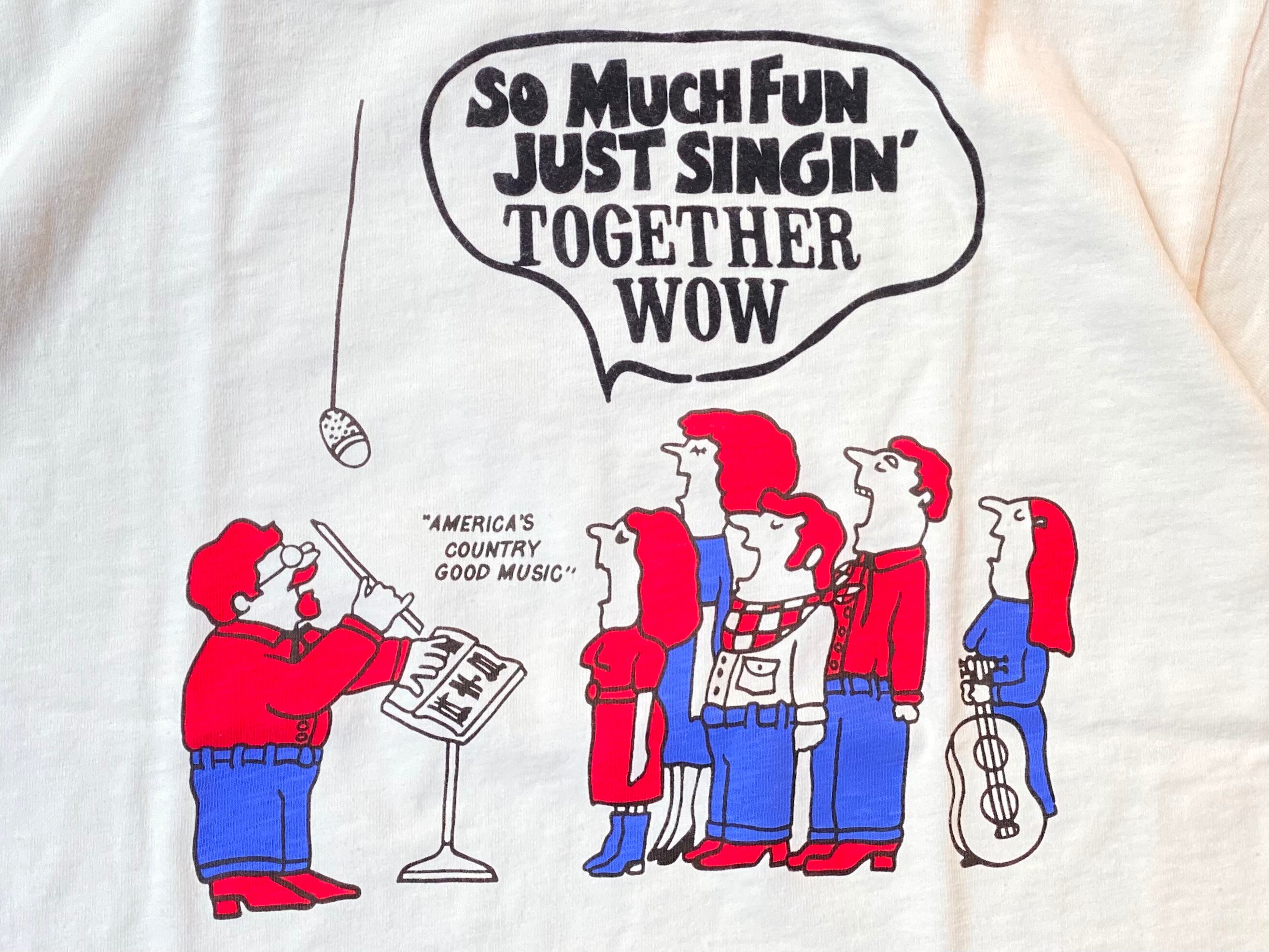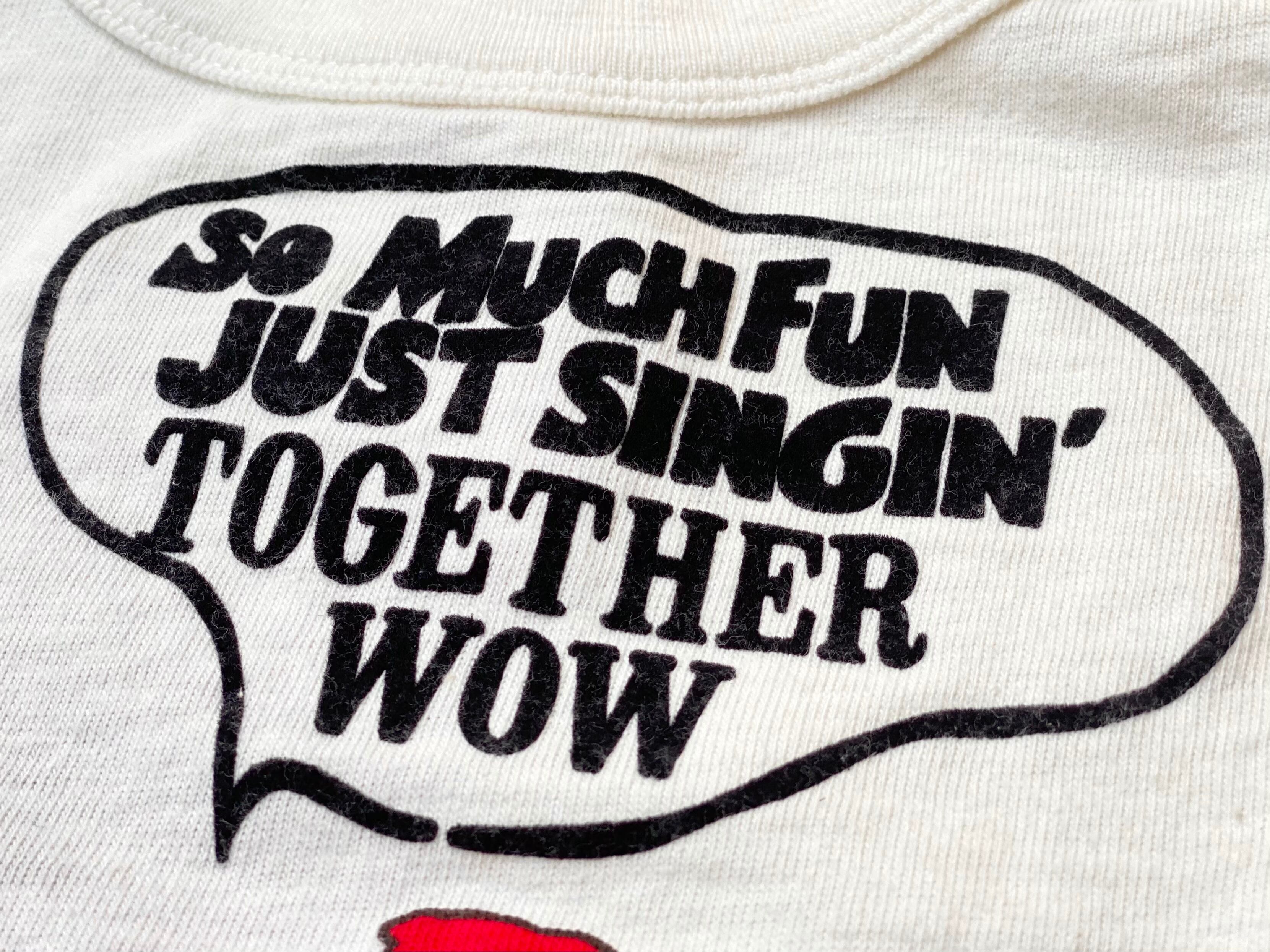 仲間のみんなで楽しく歌っている様子が描かれたイラストTシャツ。