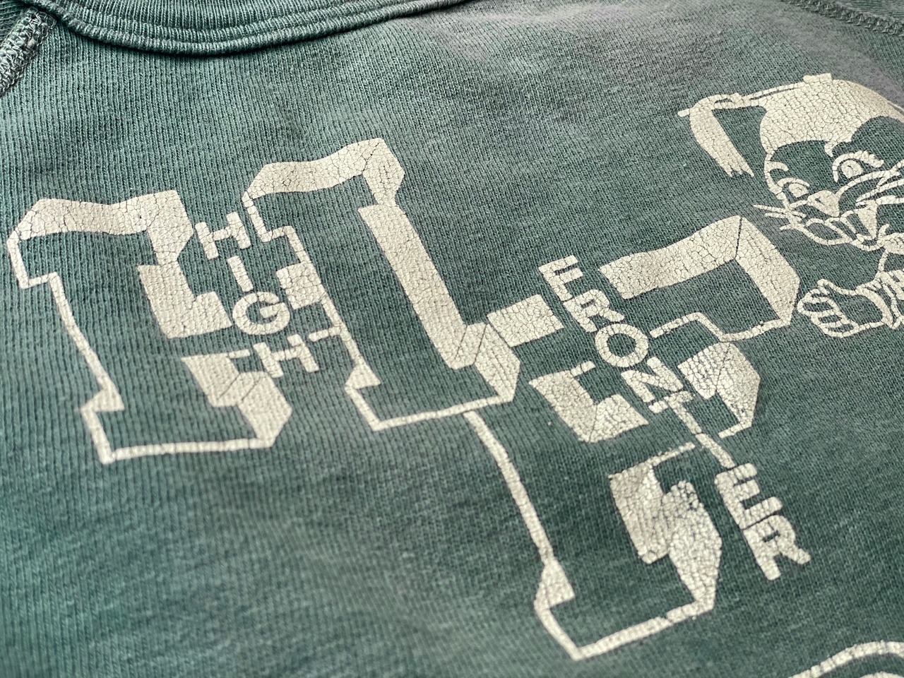日焼けによるボディの褪色、フロントのプリントはひび割れていて、ヴィンテージショップに並んでそうな最高の仕上がりです。