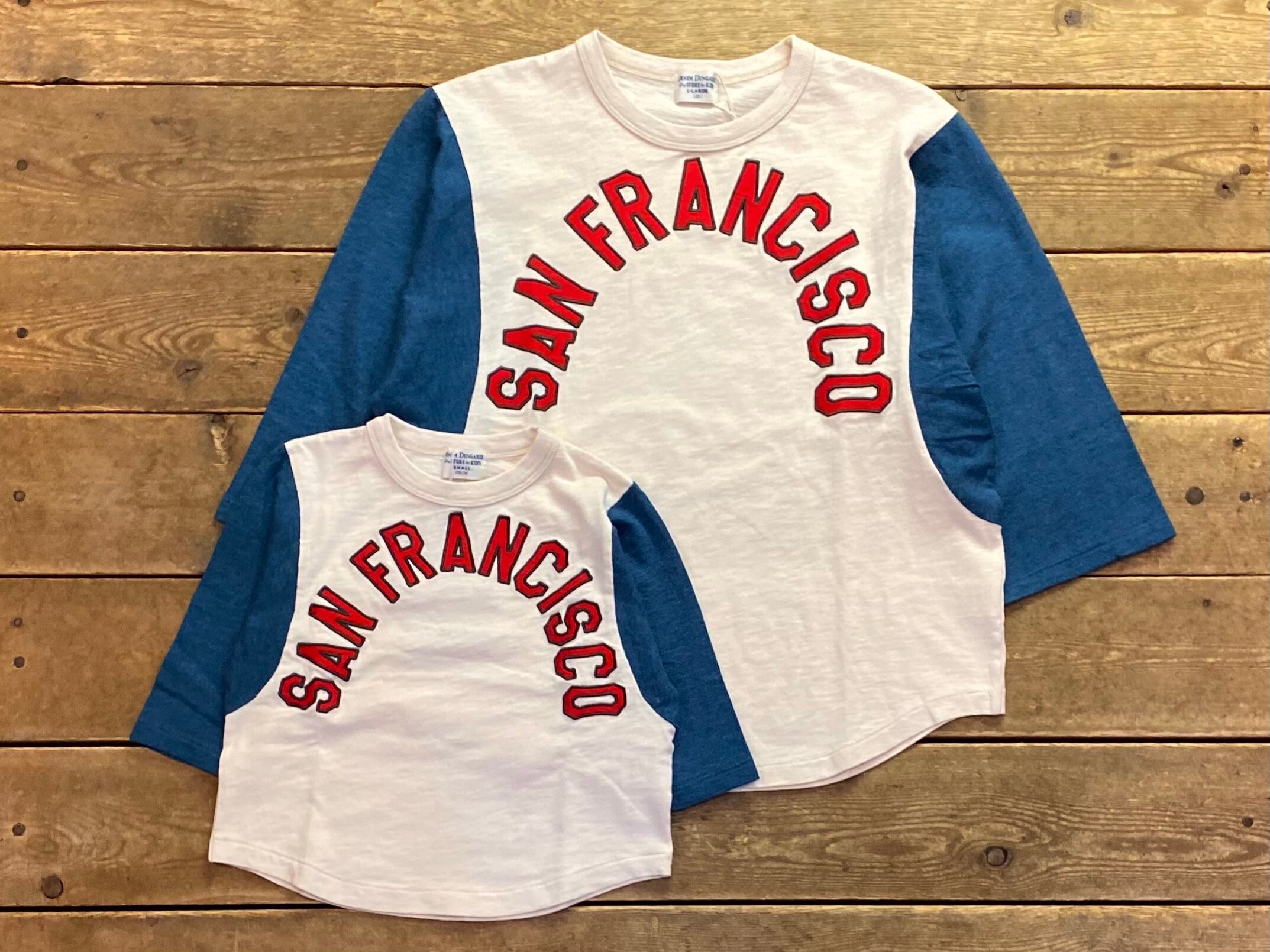 ベースボールTシャツをアレンジしたデザインの7分袖Tシャツ。