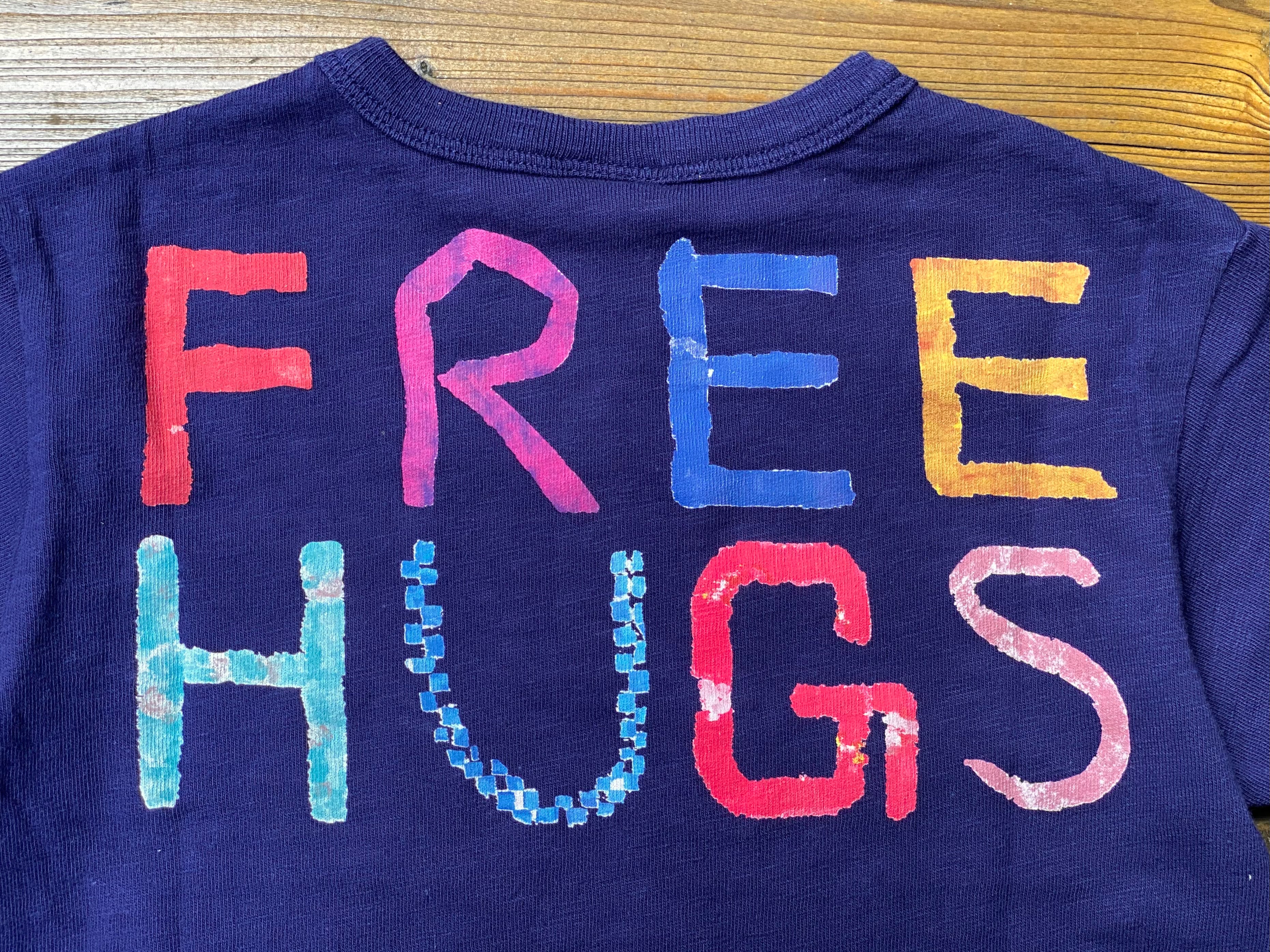 背中には"Free Hugs"のプリント。