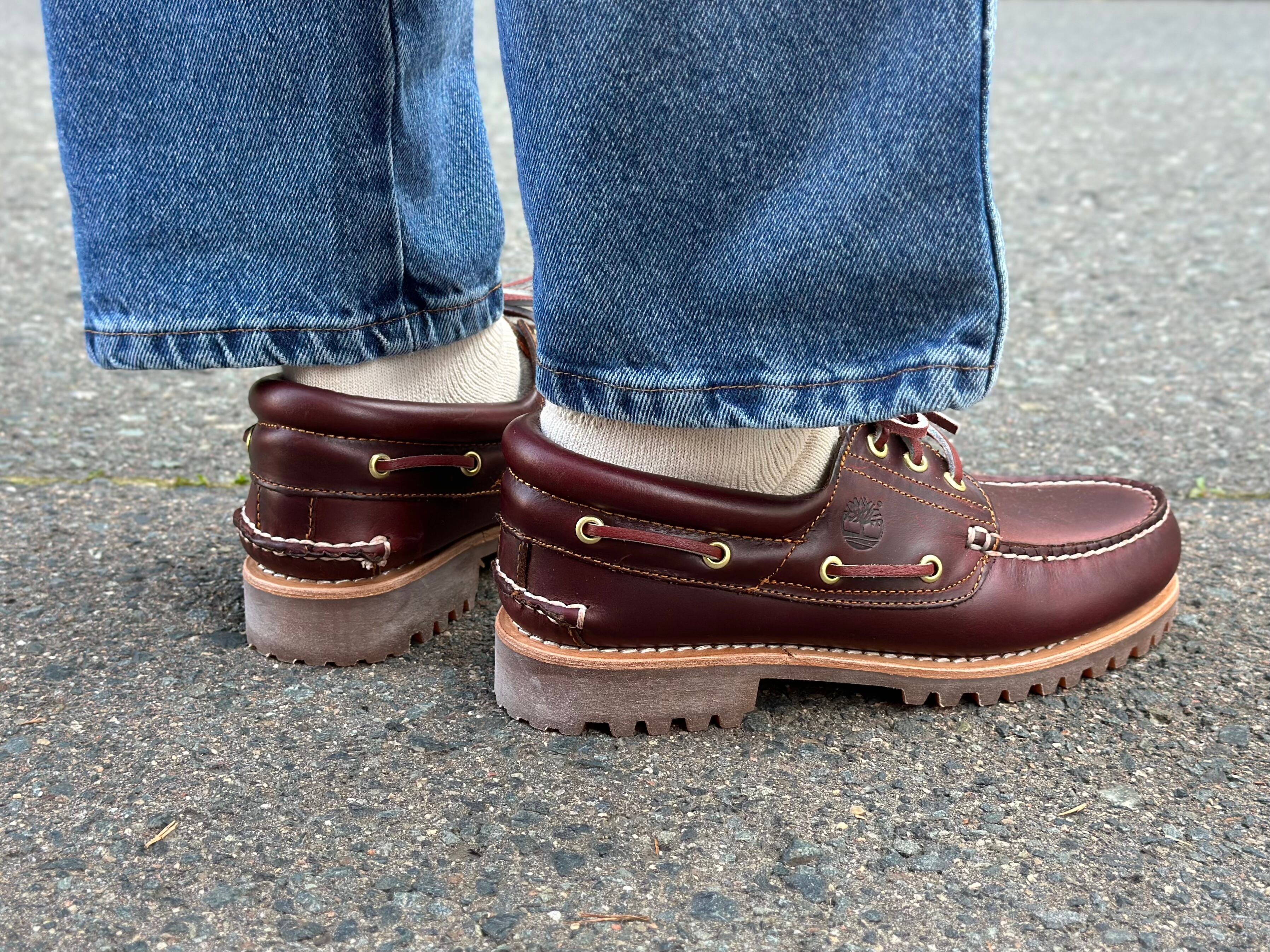 手縫いで仕上げたティンバーランドの伝統的なモカシンシューズ。