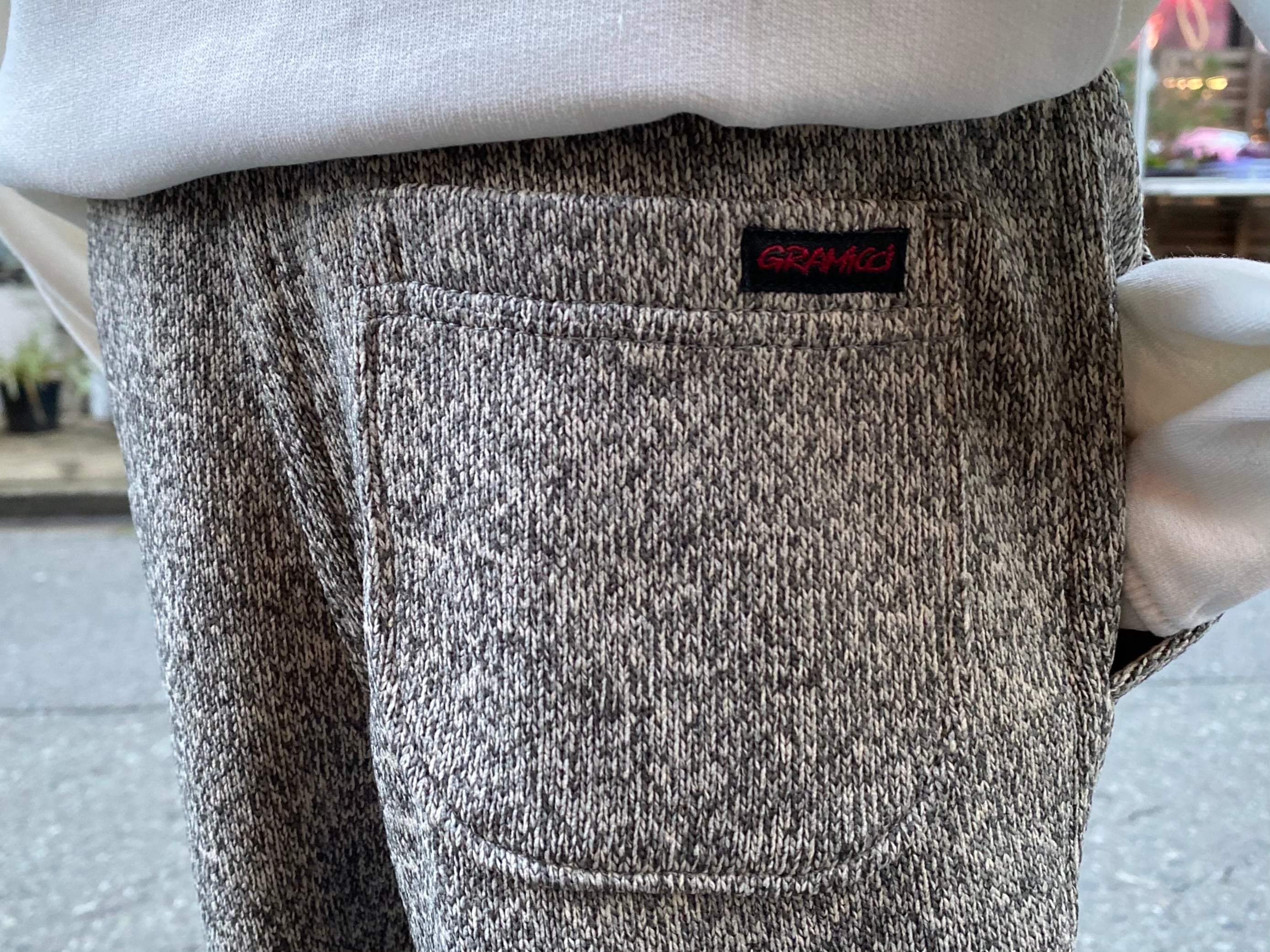 GRAMICCIの秋冬定番素材である、表面がニットのように見えるニットフリースの使用で伸縮性がありストレスなく着用いただけます。