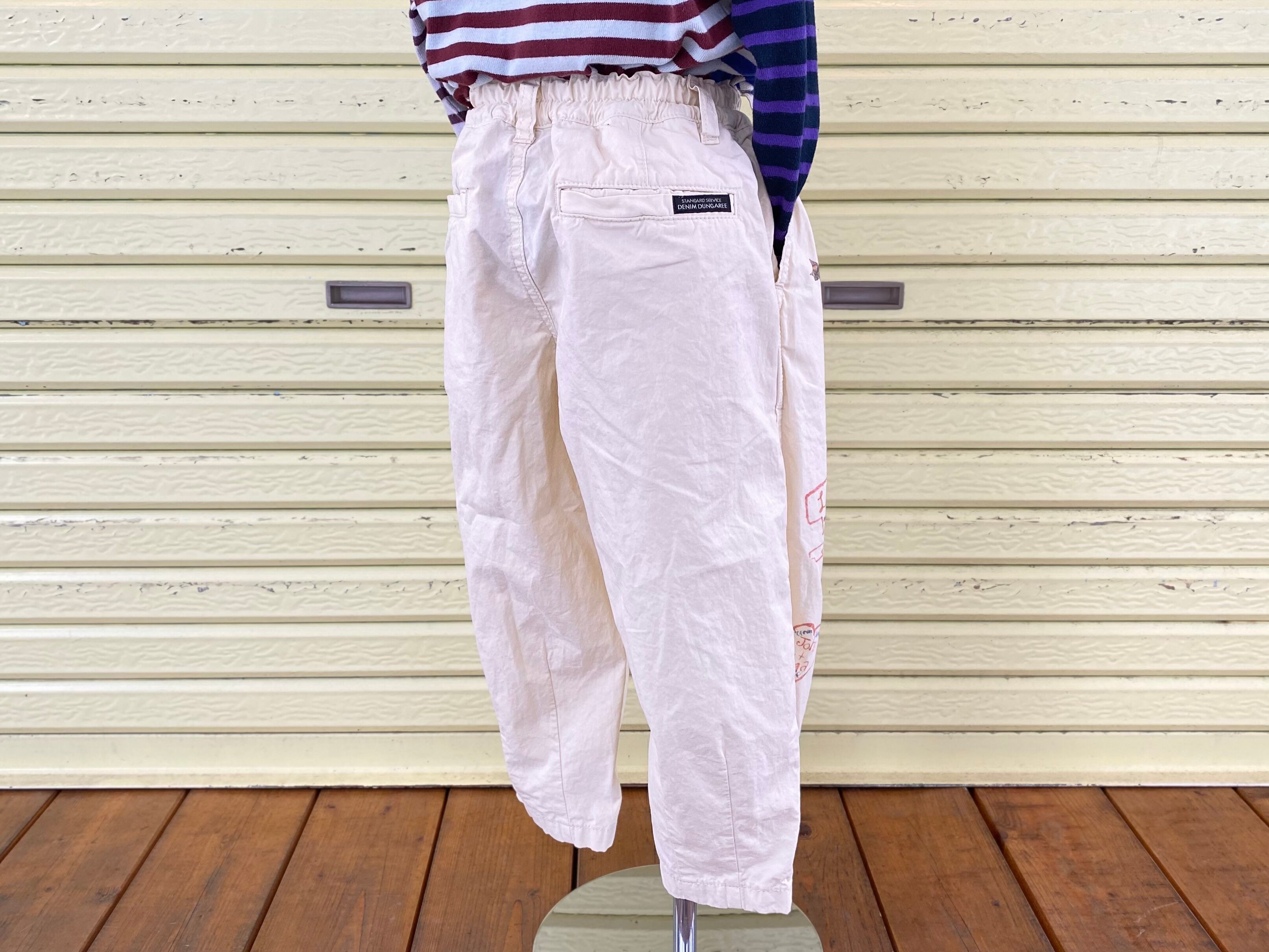 白地にカラフルな落書きプリントが際立つサーカスパンツ。
