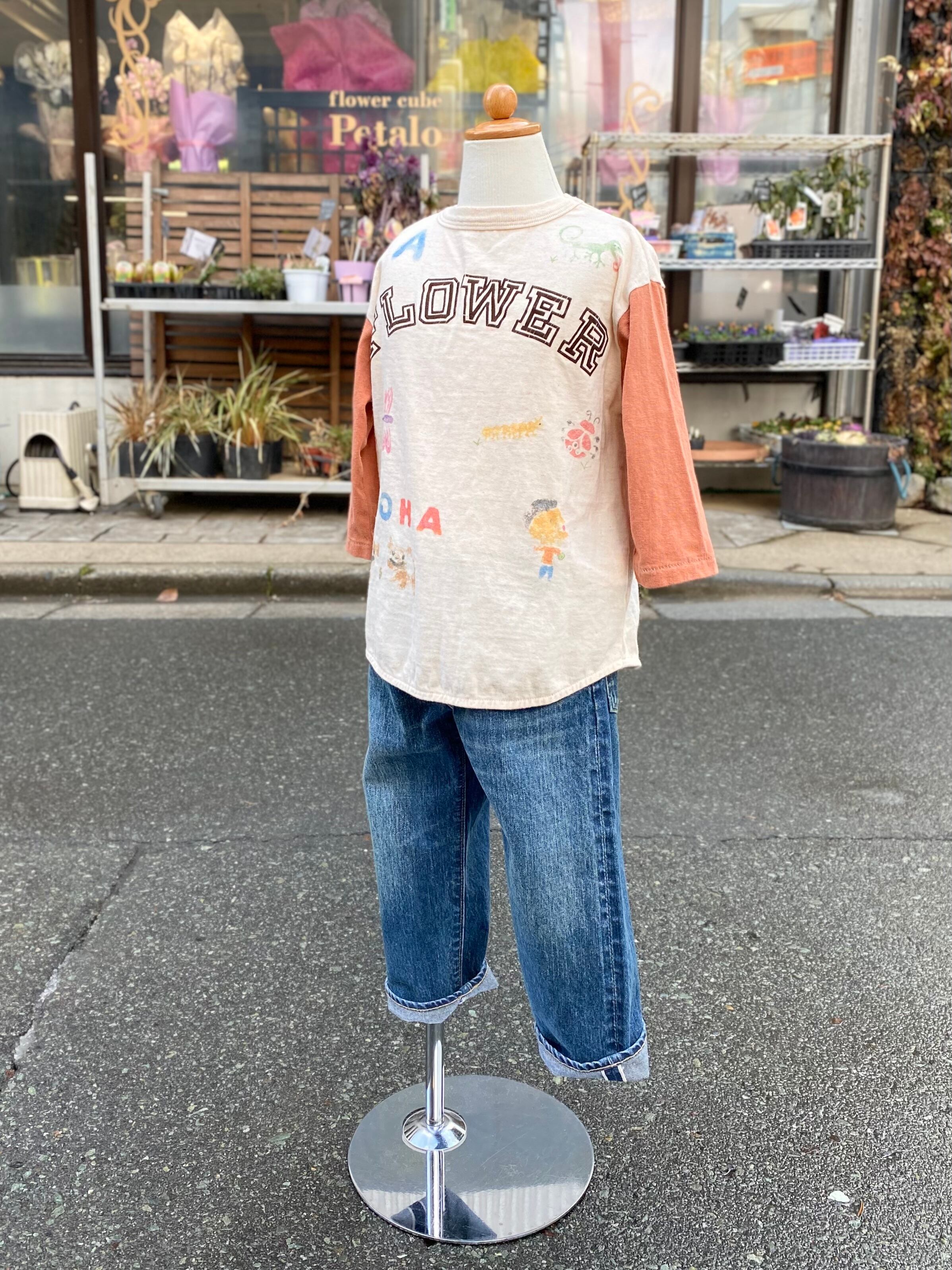 カラフルな生き物のステンシルが可愛いベースボールTシャツ。