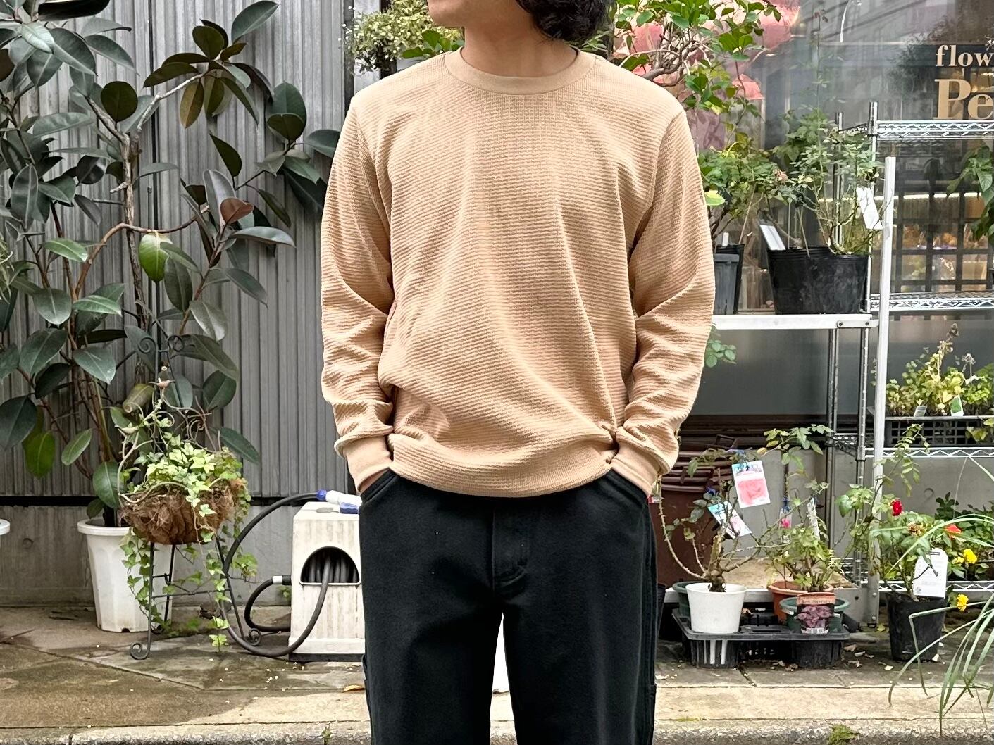 一般的なインナー用のサーマルよりも身幅が広く、ゆとりあるシルエットでリラックスした着心地。