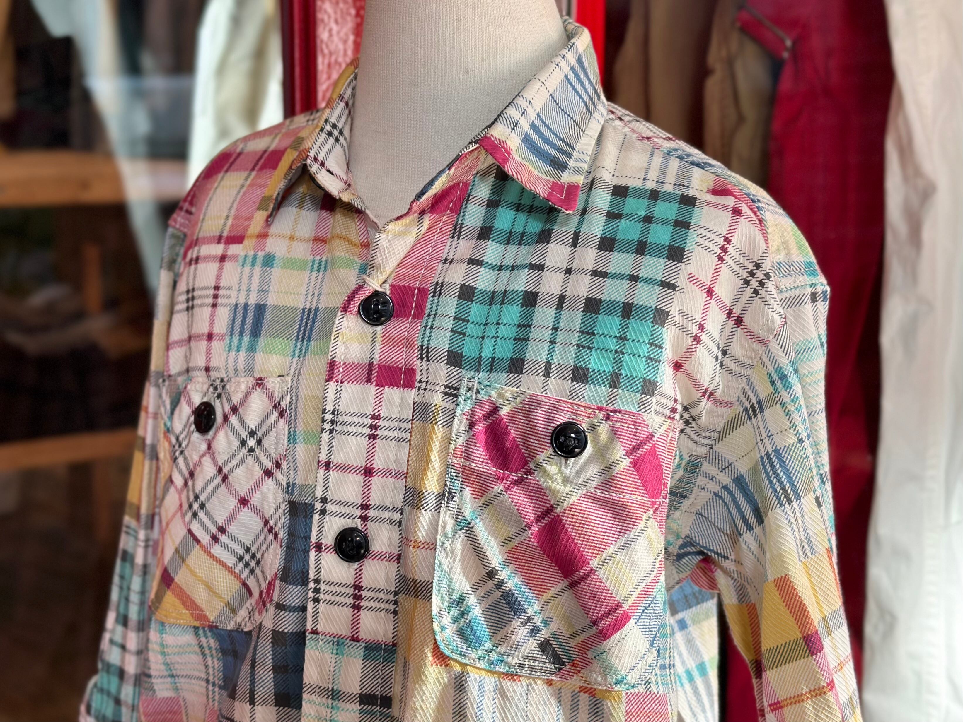 甘い織りのブッチャー(太い糸や細い糸を混用して平織した生地)にチェックのプリントをしているので涼しく、初夏の羽織り物に最適。