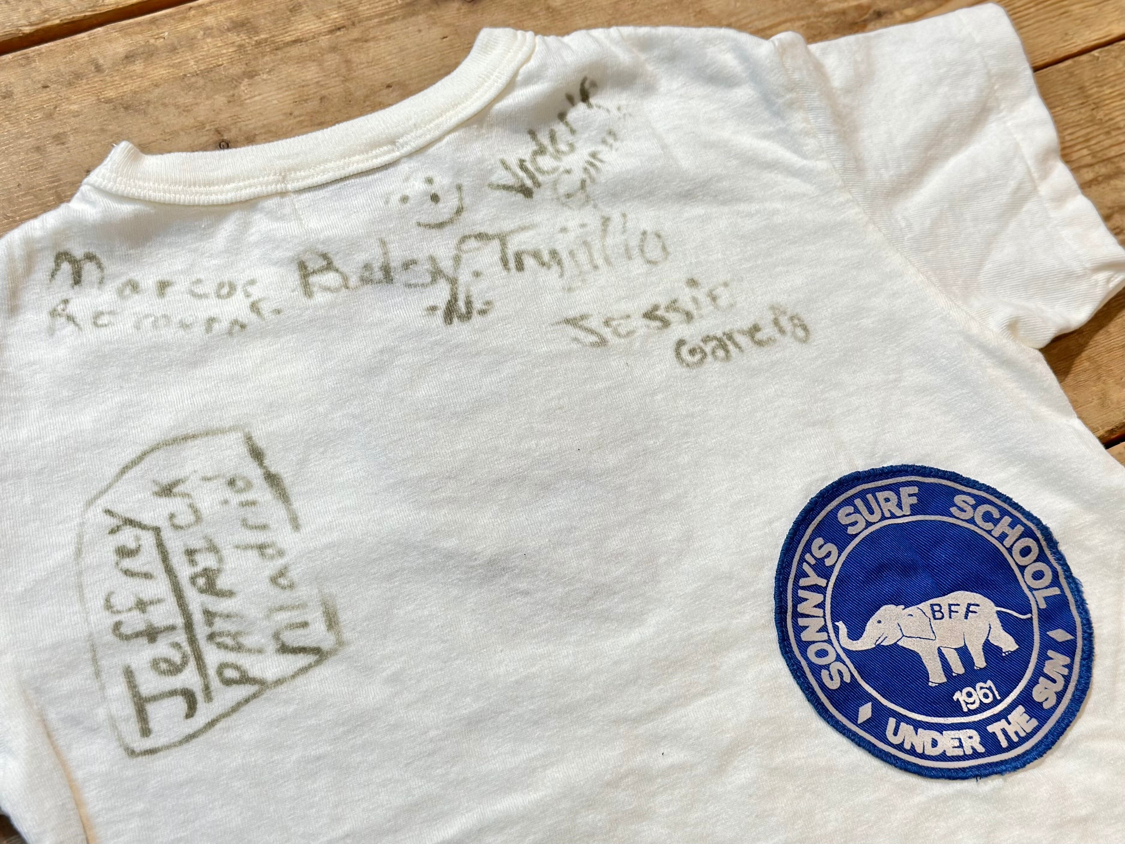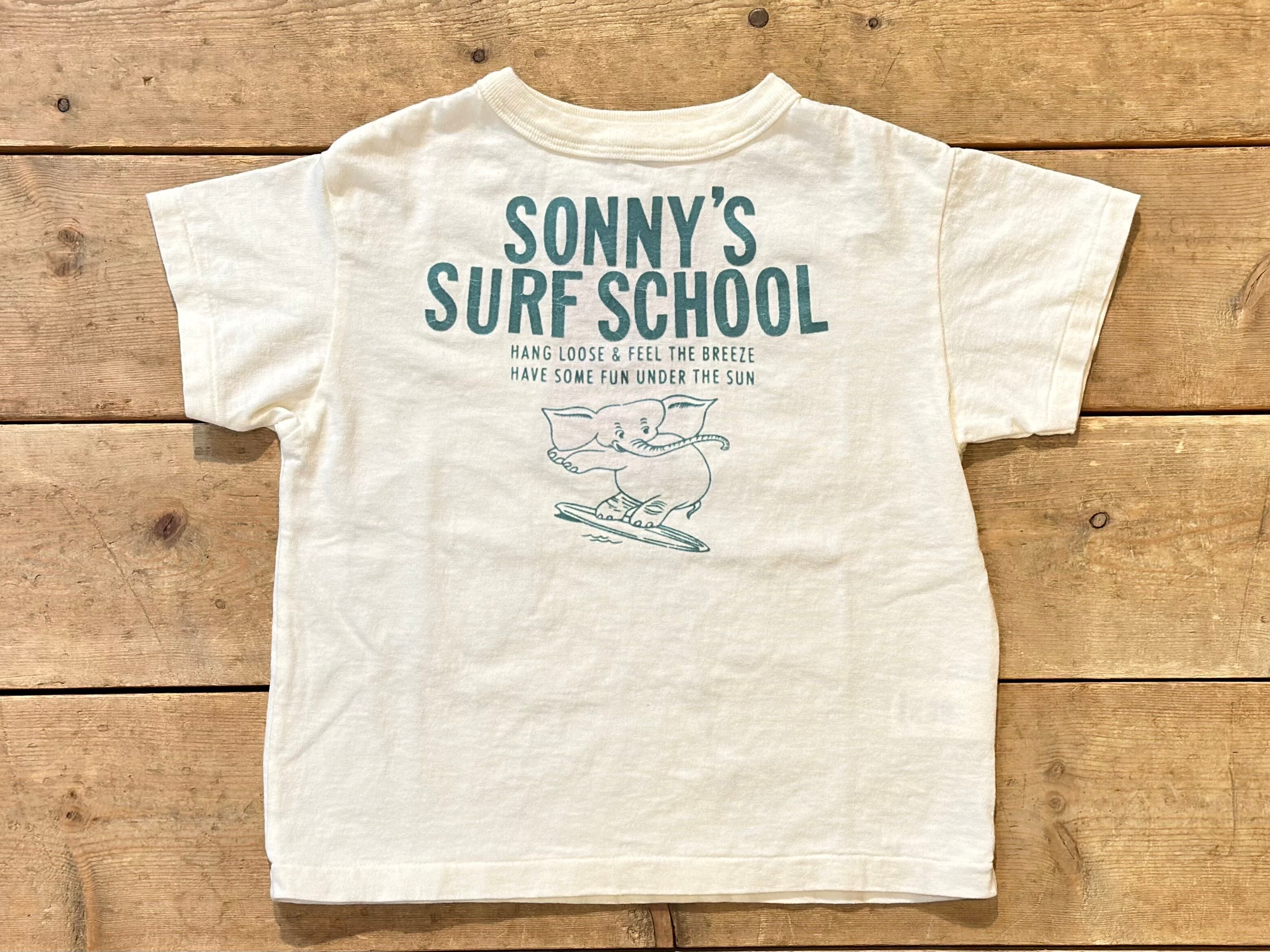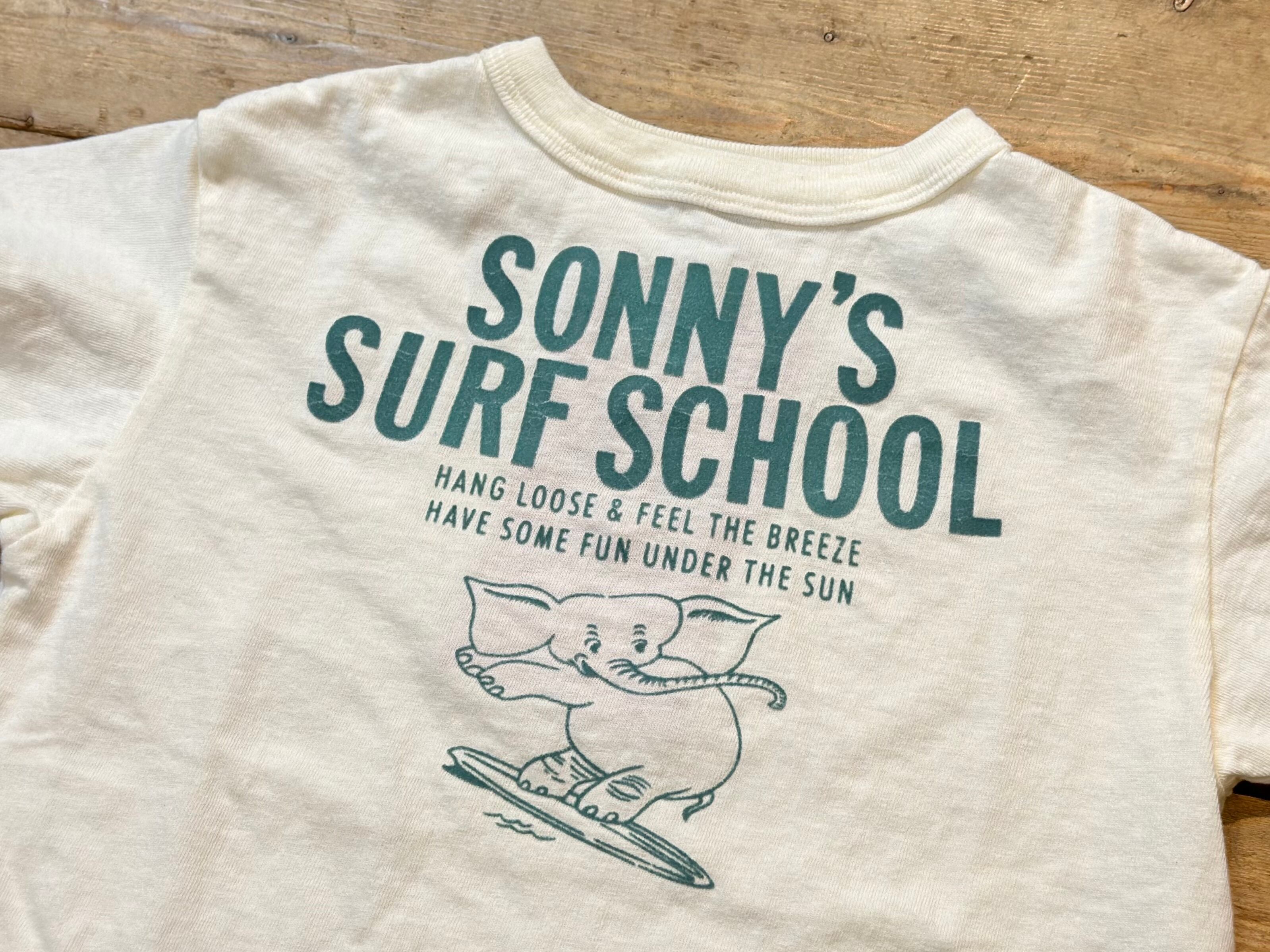 象マークのソニーズサーフスクール、という架空のデザインのTシャツ。